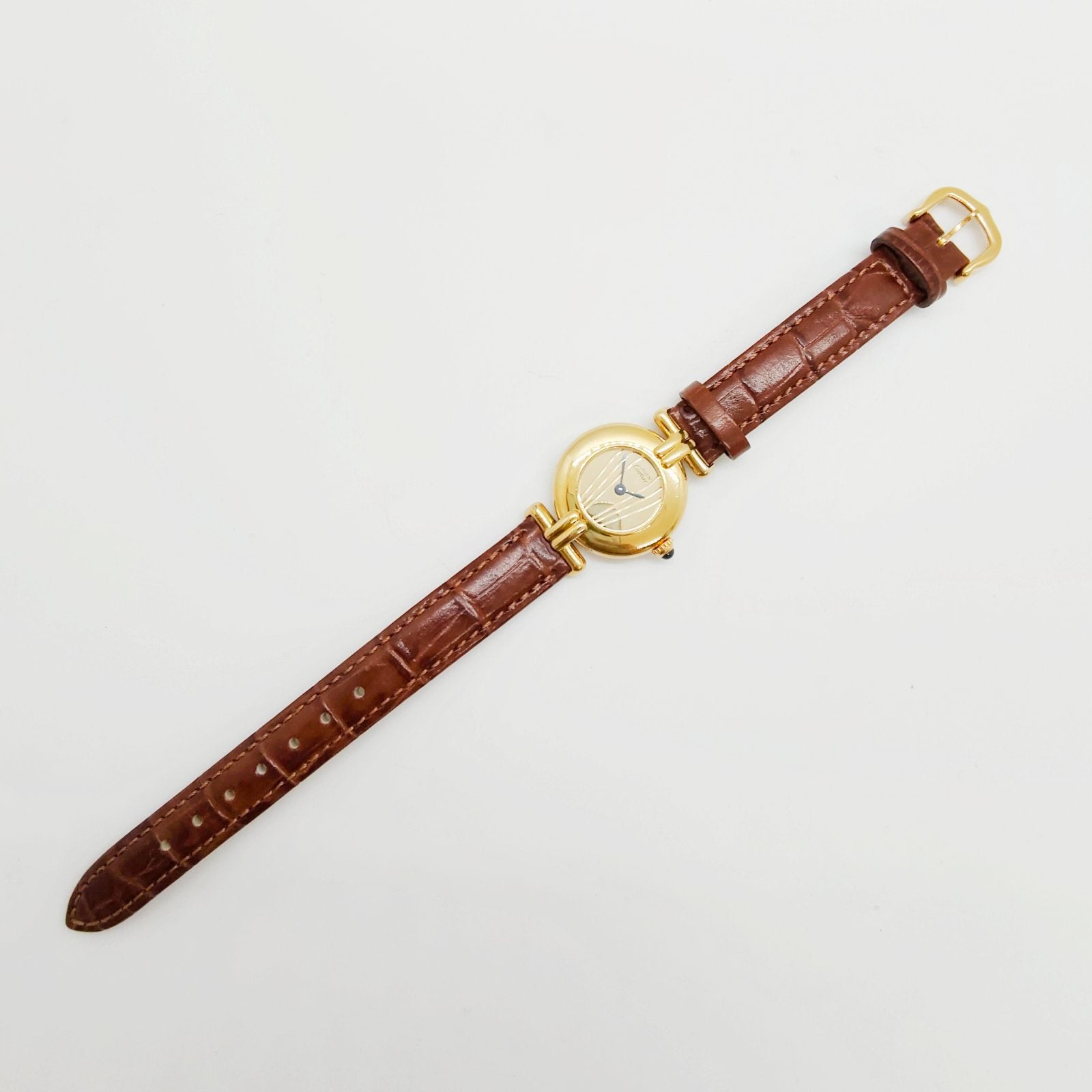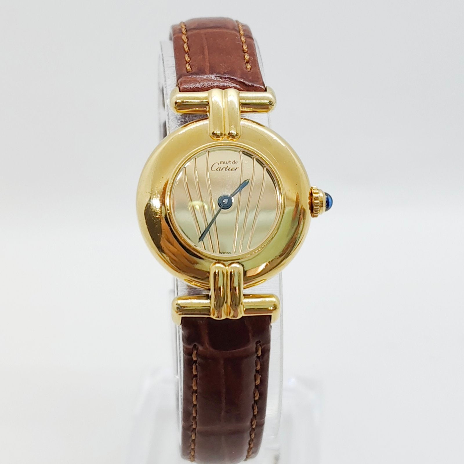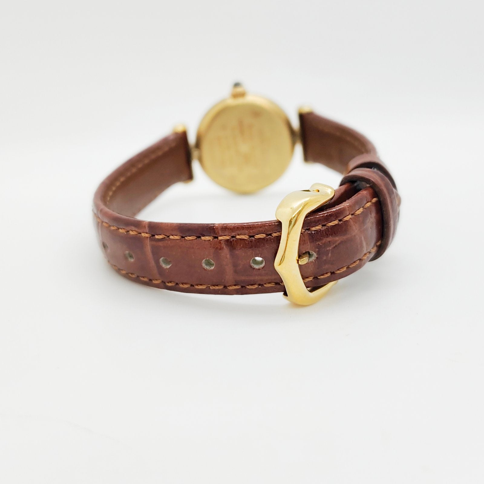 Designed for everyday elegance, this Colisée model features a reliable quartz movement and a classic brown leather strap with a matching gold-plated buckle for exceptional comfort and versatility. Whether worn casually or for formal occasions, this watch delivers a statement of refined taste and understated luxury. Add this vintage Cartier to your collection and enjoy a timeless accessory that enhances any wardrobe with effortless grace.