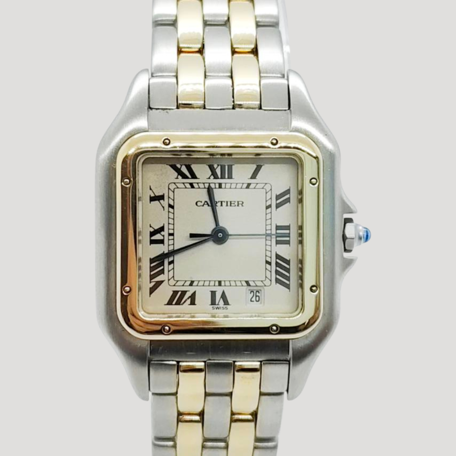 The Cartier Panthère is more than a wristwatch—it's an icon of refined luxury and enduring style. The reference 83083242, often associated with other identifiers like Model 1100, was introduced during the golden era of the 1980s, a time when bold elegance and effortless glamour defined luxury fashion. Known for its sleek lines, polished surfaces, and instantly recognizable two-tone bracelet, this midsize model is one of the most beloved iterations of the Panthère collection.