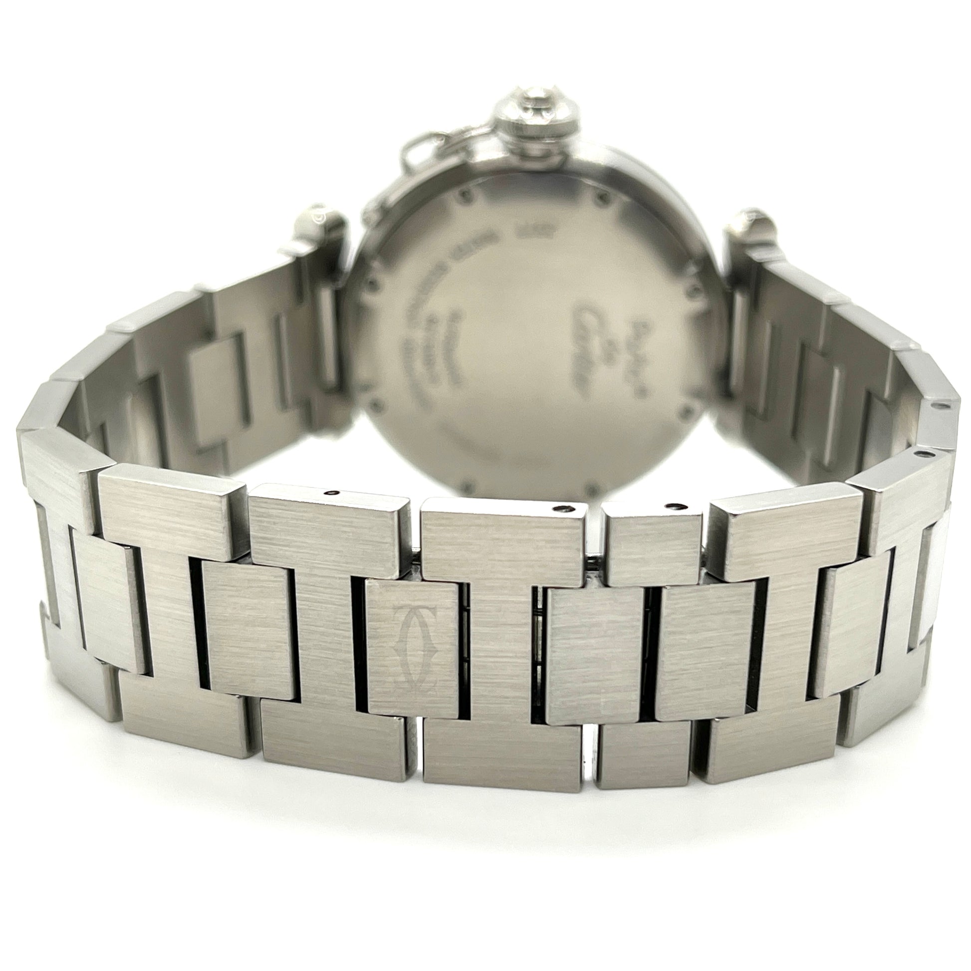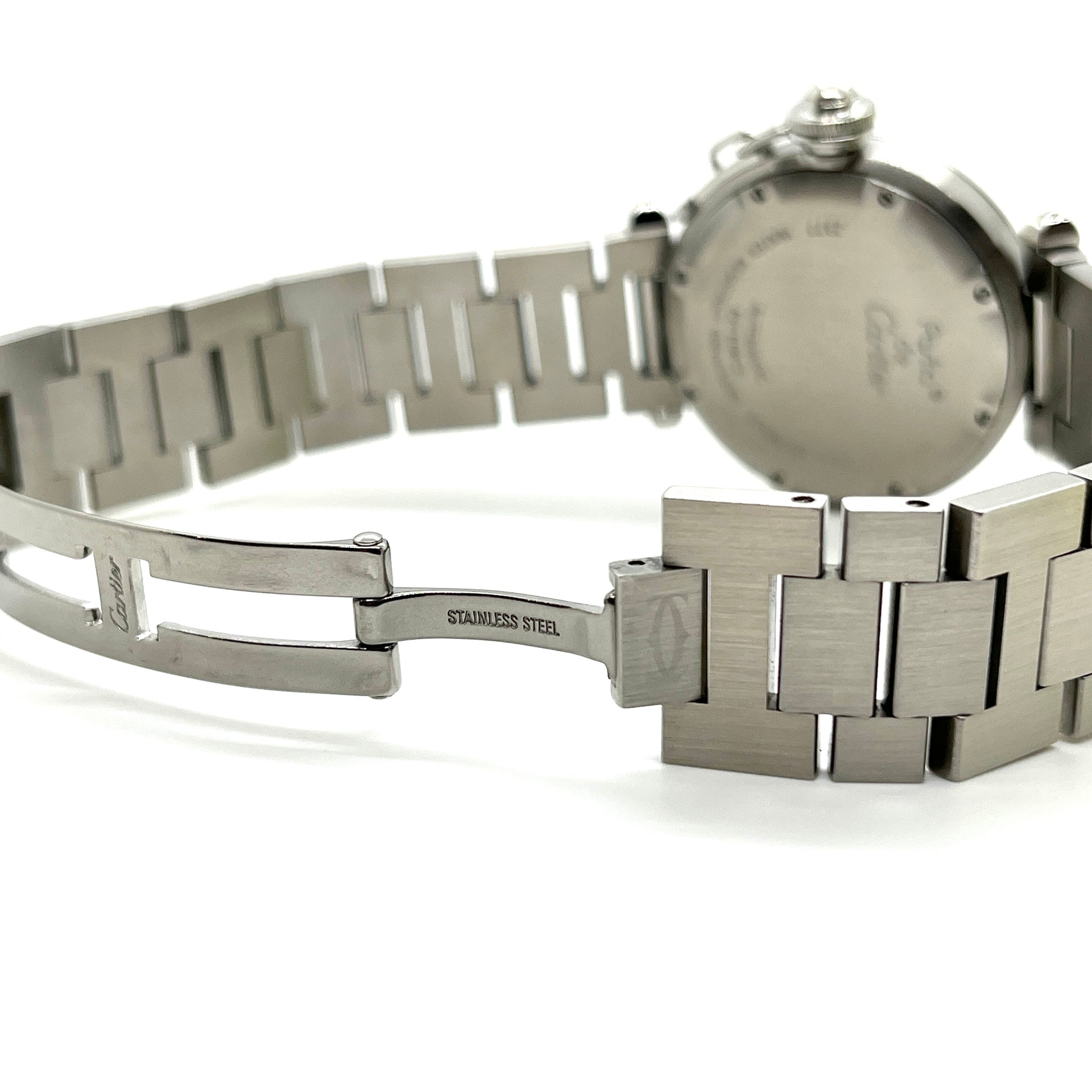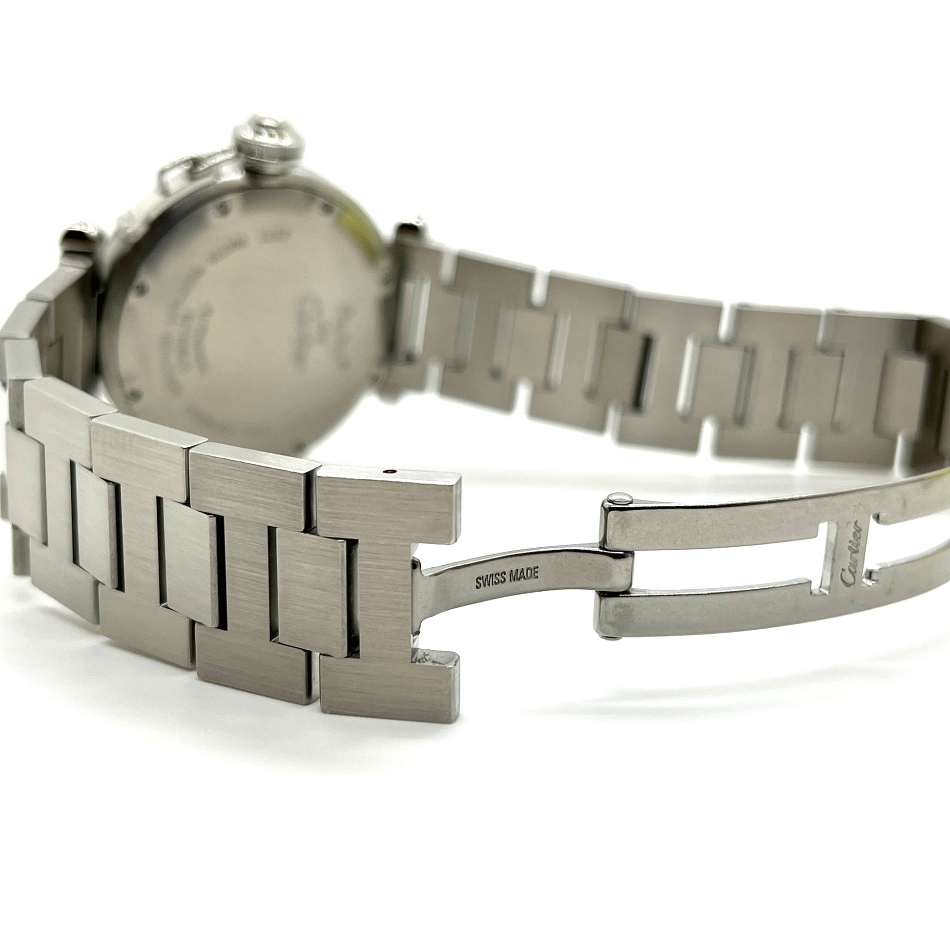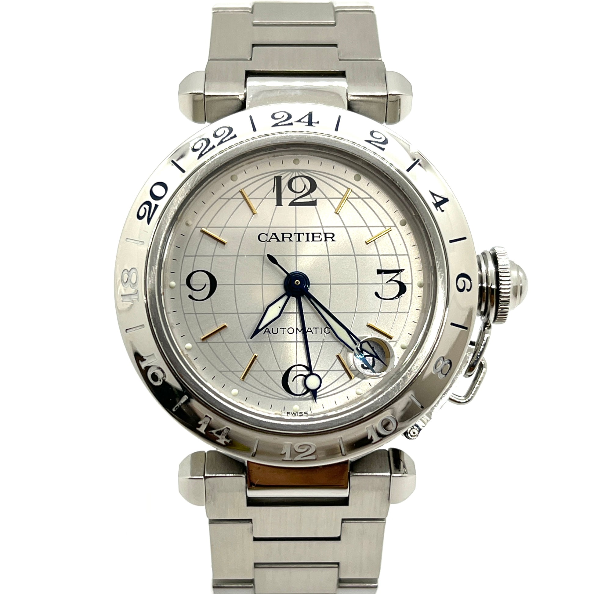 This Cartier Pasha C Meridian features a GMT function, bold numerals, and a distinctive stepped dial design. Simple yet sophisticated, this watch exudes unique elegance, making it a versatile choice for both casual and formal wear. As this model is no longer in production, automatic versions in excellent condition are becoming increasingly rare and desirable. This watch is in superb condition, with no visible dents, chips, or scratches on the case, bezel, sapphire crystal, crown, dial, or bracelet. We’re confident you’ll be thrilled with its exceptional quality upon receipt.