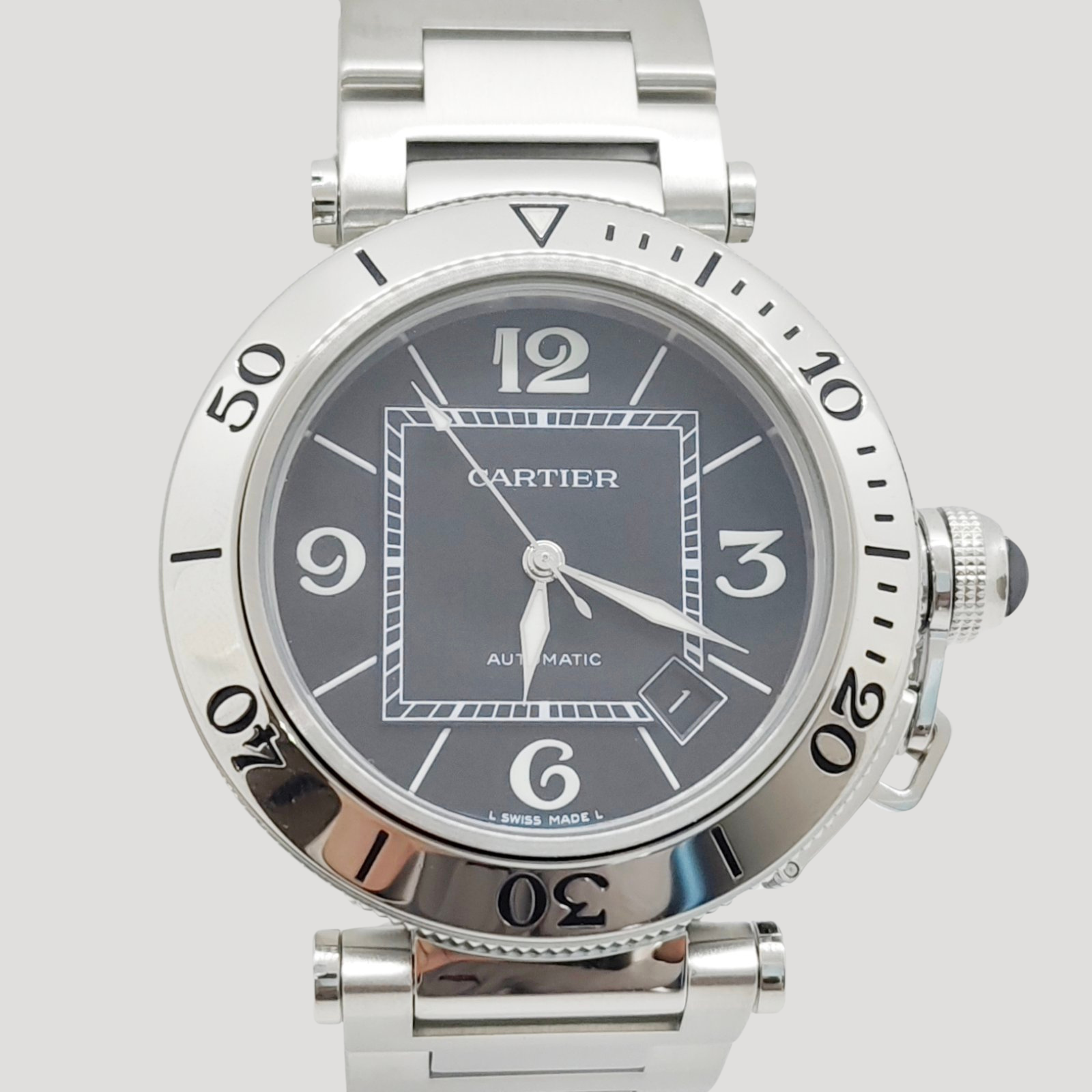 Powered by the reliable automatic Cartier Calibre 049 movement, the Seatimer delivers a 42-hour power reserve, making it as functional as it is stylish. The polished stainless steel bracelet with a hidden double-deployant clasp ensures both comfort and a seamless look on the wrist. As part of the Pasha family — originally designed with water resistance in mind — the Seatimer W31077M7 is a versatile luxury sports watch that transitions effortlessly from casual to formal settings, appealing to both Cartier enthusiasts and discerning collectors alike.