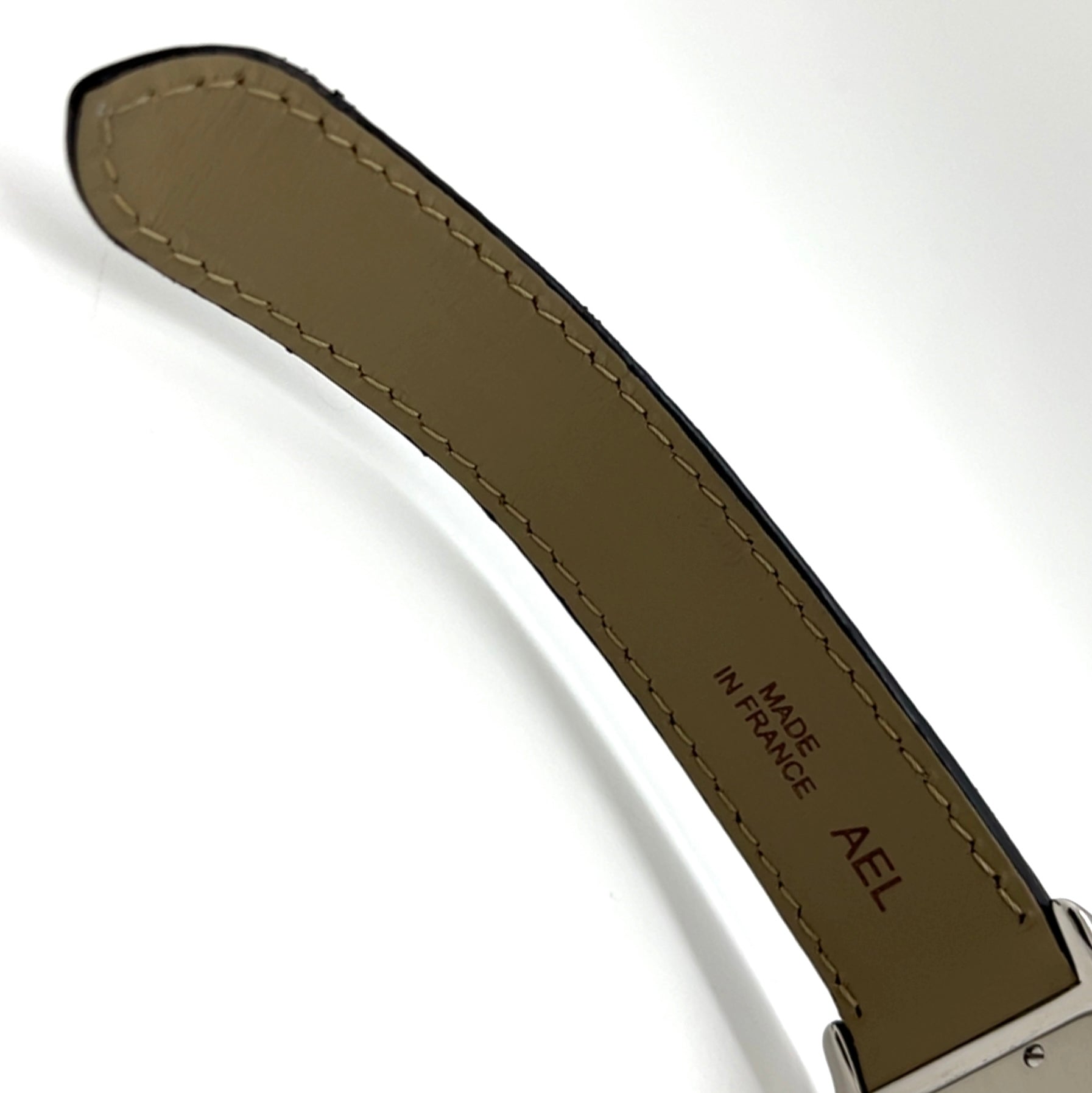 At first glance, the watch exudes a unique blend of tradition and bold refinement. Crafted in high-polish 18k yellow gold, the square case of the Reference 1566 remains faithful to the original Santos form — a pioneering shape that redefined wristwatches in the early 20th century. The exposed screws on the bezel and lugs, emblematic of the Santos DNA, add a touch of industrial elegance, while the polished surfaces highlight the clean symmetry of its Art Deco-inspired silhouette.