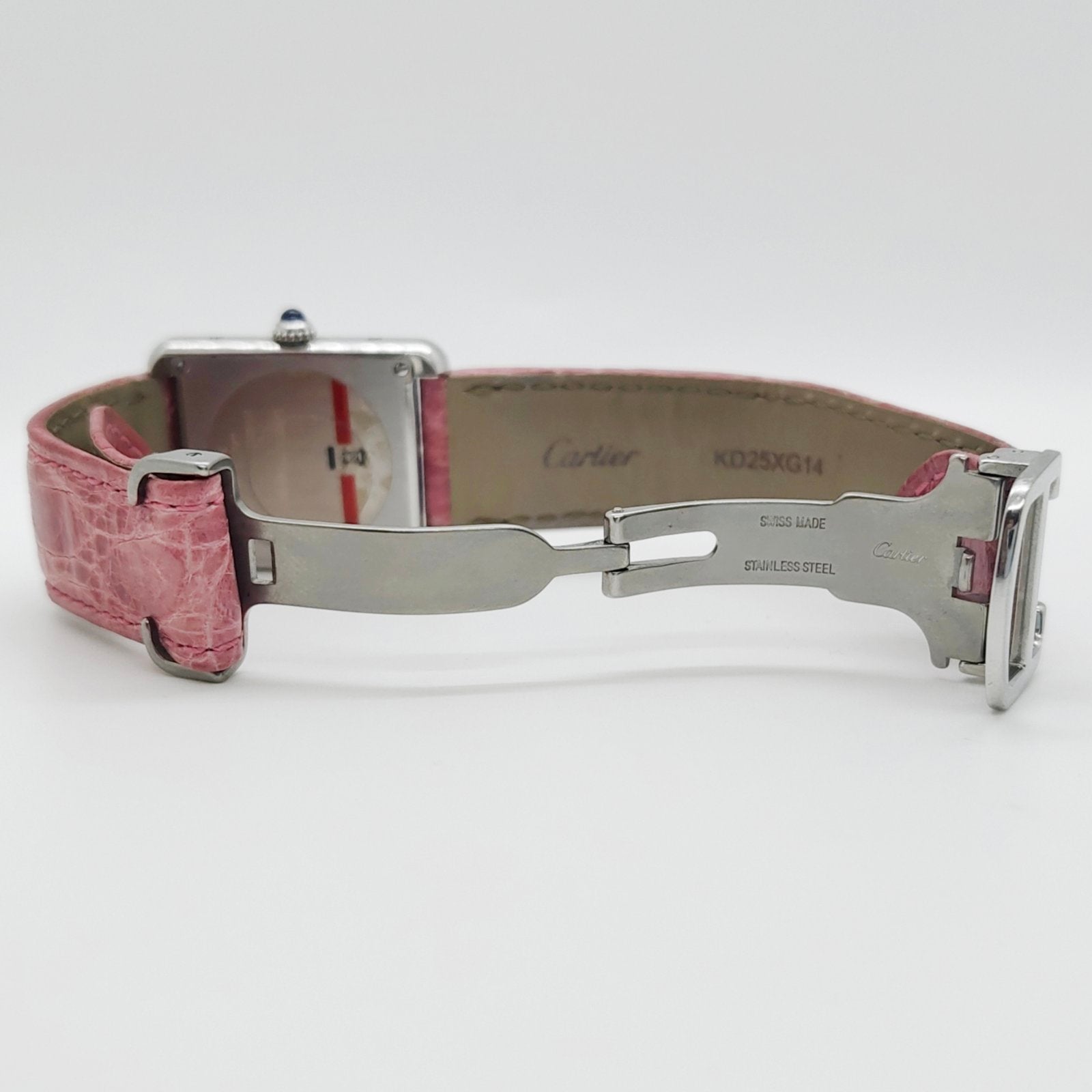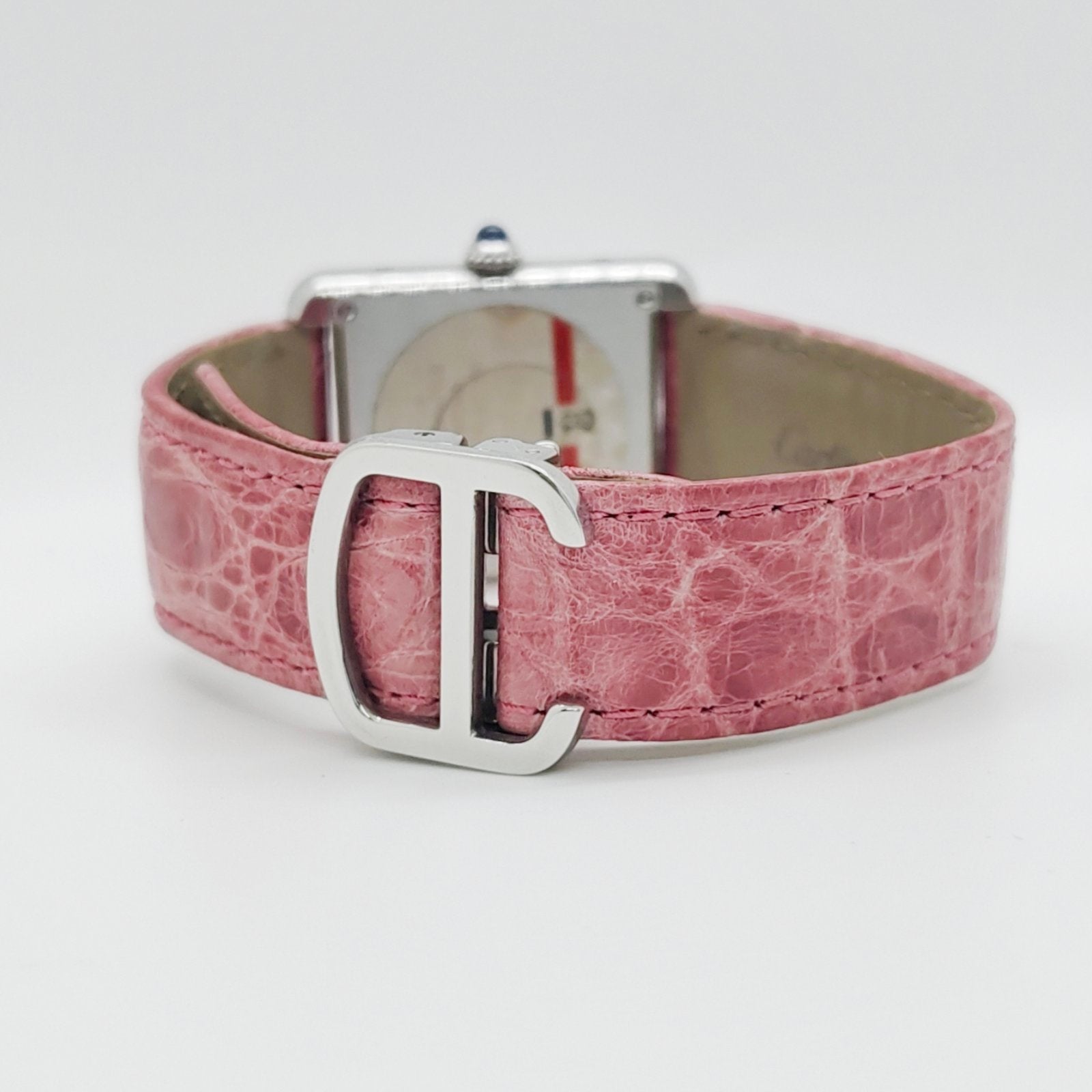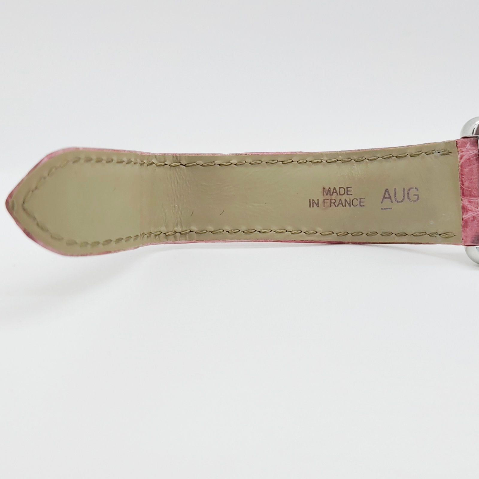 Paired with a striking pink alligator-pattern leather strap, the Tank Solo Ref. 3170 exudes femininity and Parisian charm. Powered by a precise quartz movement, it offers effortless reliability and daily comfort, making it a versatile choice for both casual and formal wear. Elegant, confident, and instantly recognizable, this Cartier Tank Solo is more than just a watch — it’s an enduring symbol of taste, refinement, and the unmistakable artistry of the Maison Cartier.