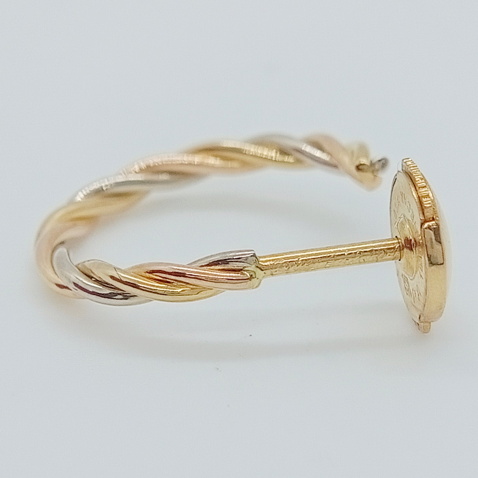 Iconic Cartier tri-color design -- symbolizing love (yellow), fidelity (white), and friendship (rose).
