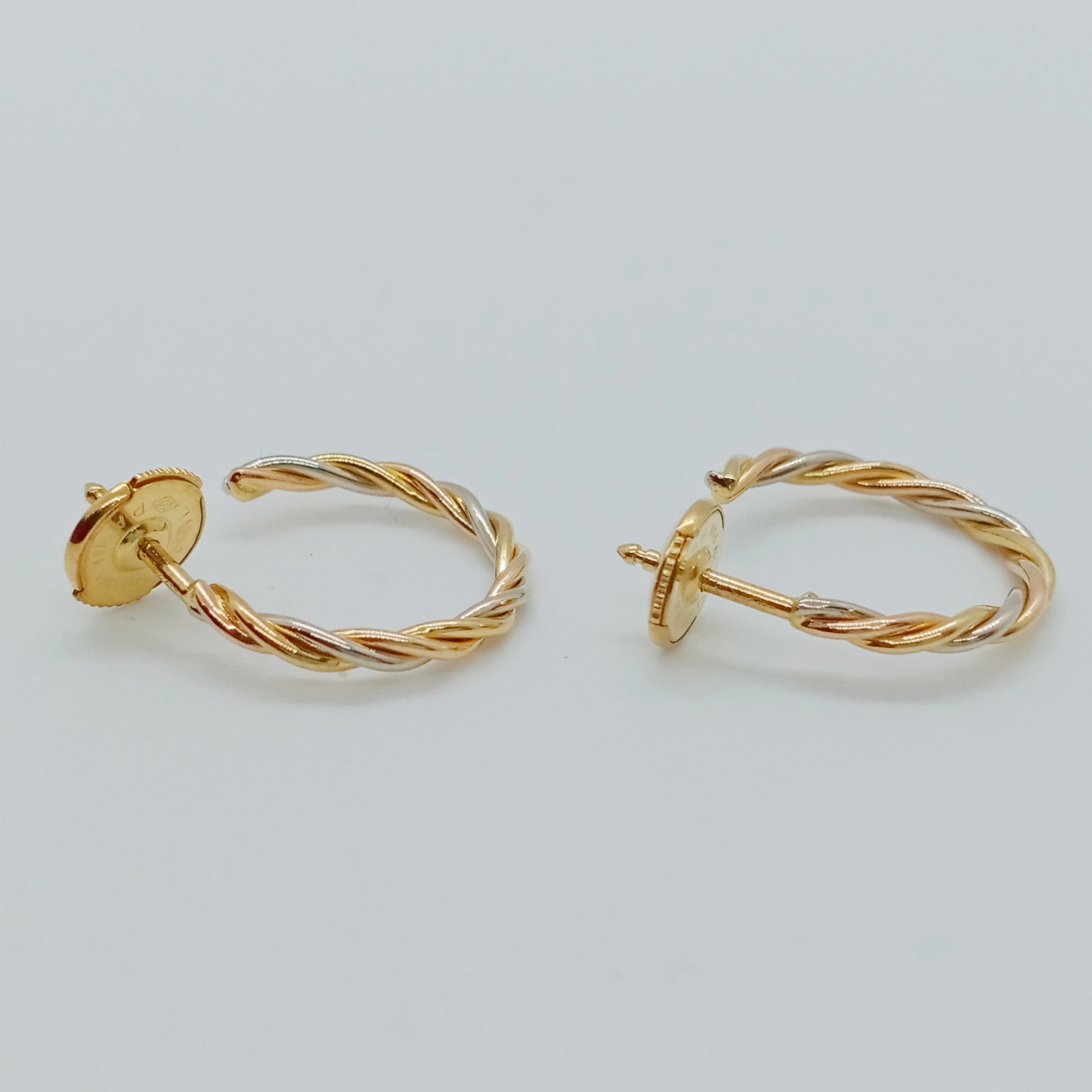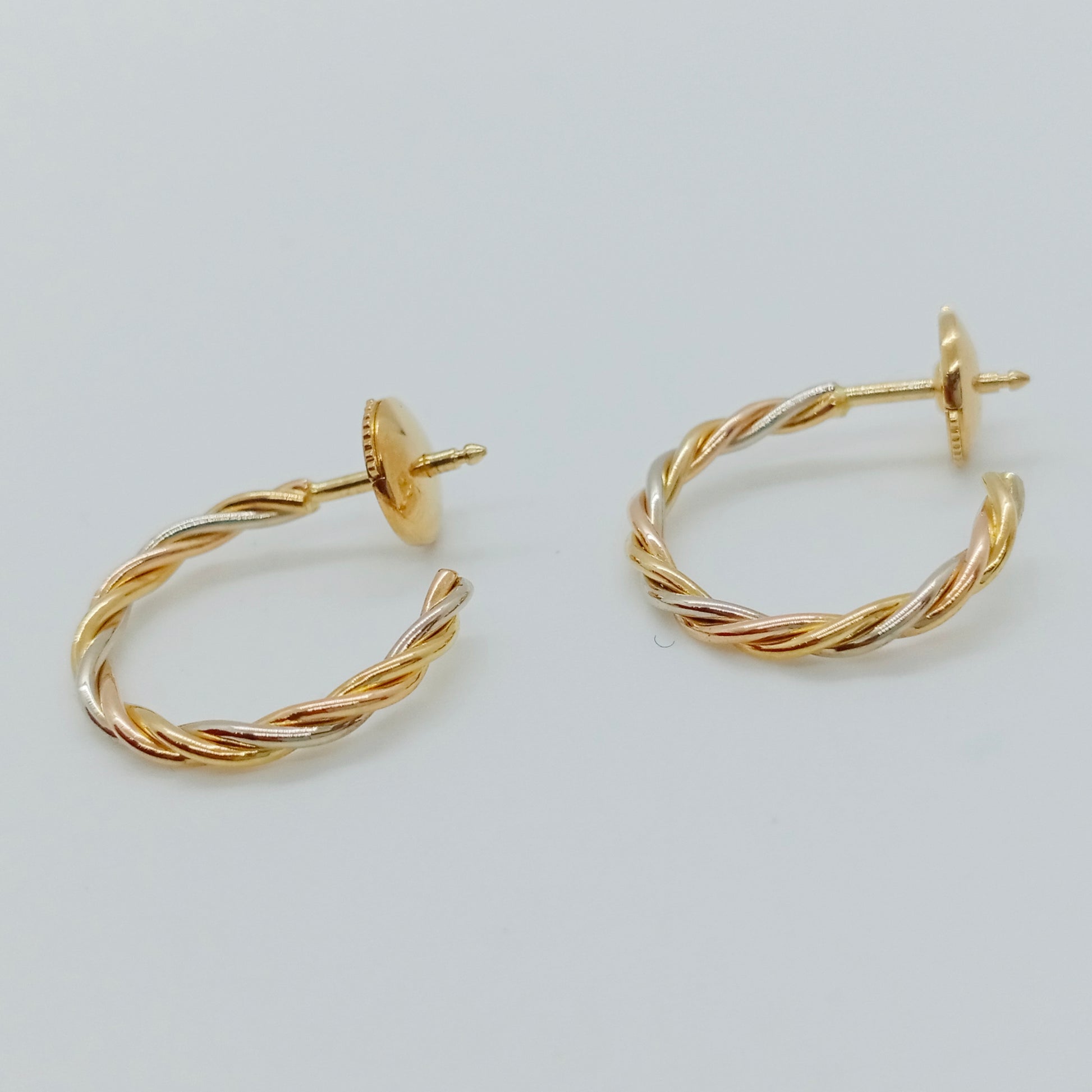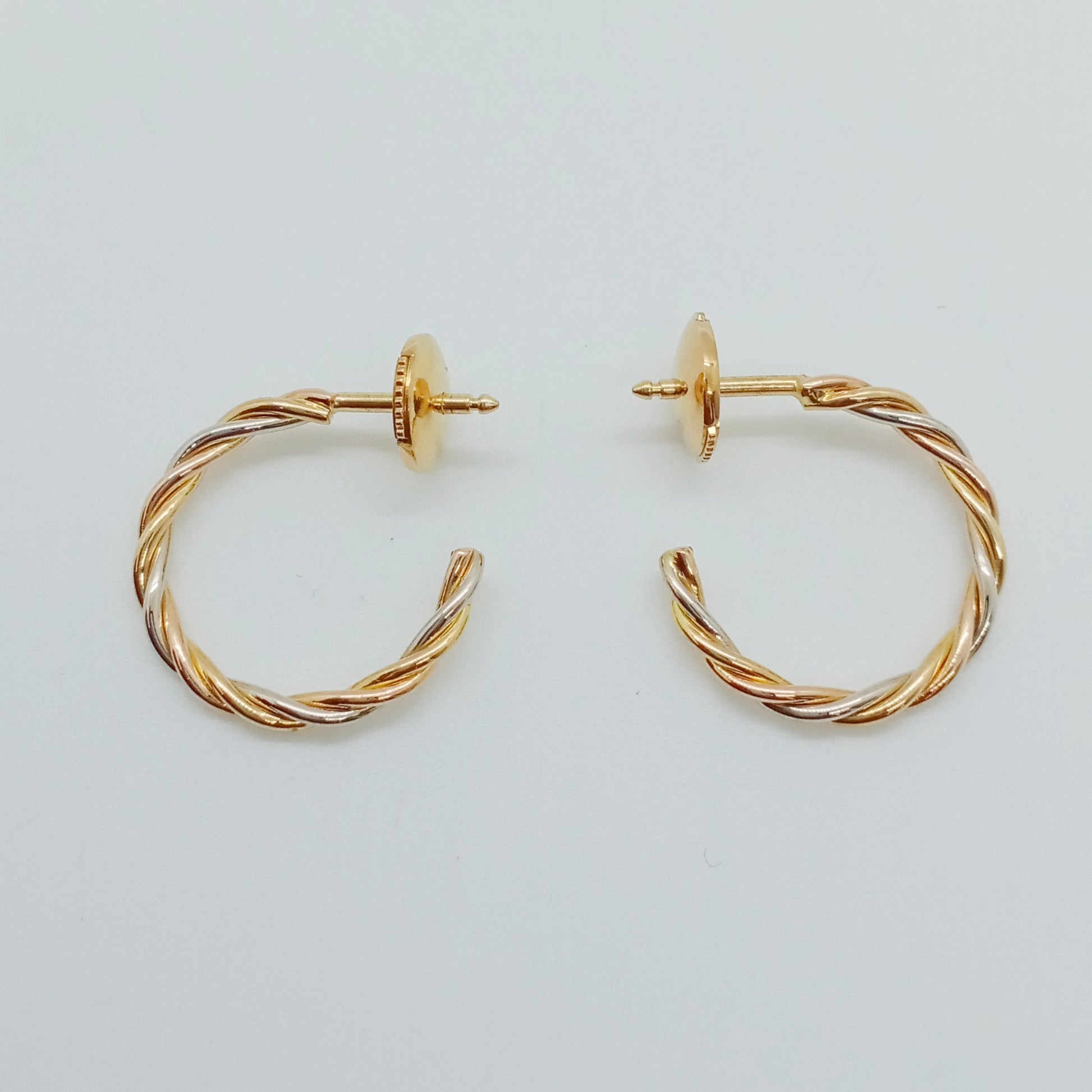 Cartier’s Twist Trinity earrings reimagine the iconic tri-color motif into an elegant, spiral form—available in both understated mini studs and statement medium hoops. A playful, sculptural twist on the classic Trinity design, twisting elegance with dynamic form.