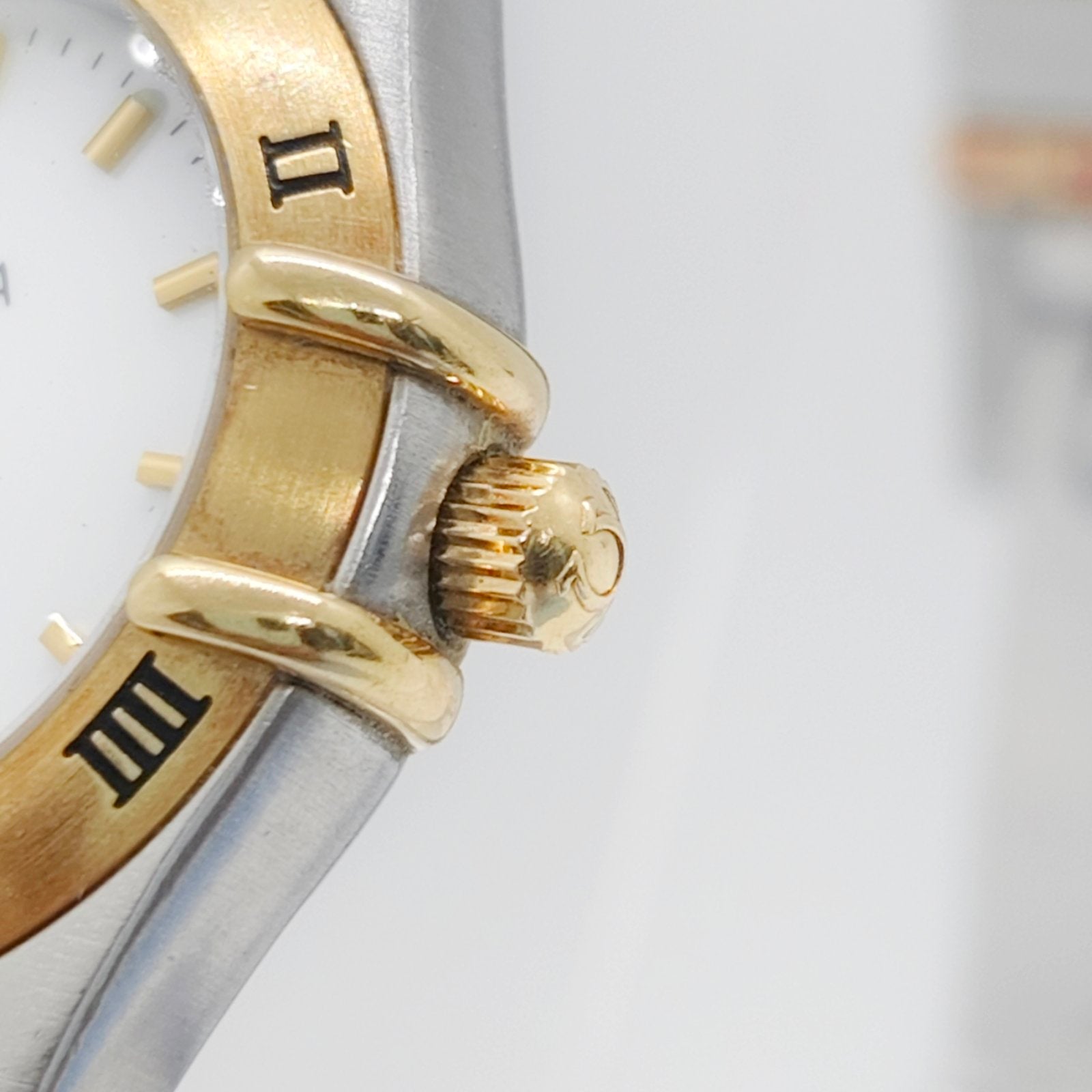 The Omega Constellation Mini Quartz Two-Tone is a timeless expression of elegance and precision, blending the sophistication of stainless steel with the warmth of yellow gold. Its iconic Roman numeral bezel and white dial exude classic Omega charm, while the refined 25mm case offers a graceful fit on the wrist. The golden hour markers and hands add a touch of luxury, perfectly complemented by the signature Constellation star above 6 o’clock. Designed for everyday wear yet elegant enough for formal occasions, this watch reflects Omega’s legacy of refined craftsmanship and reliability.